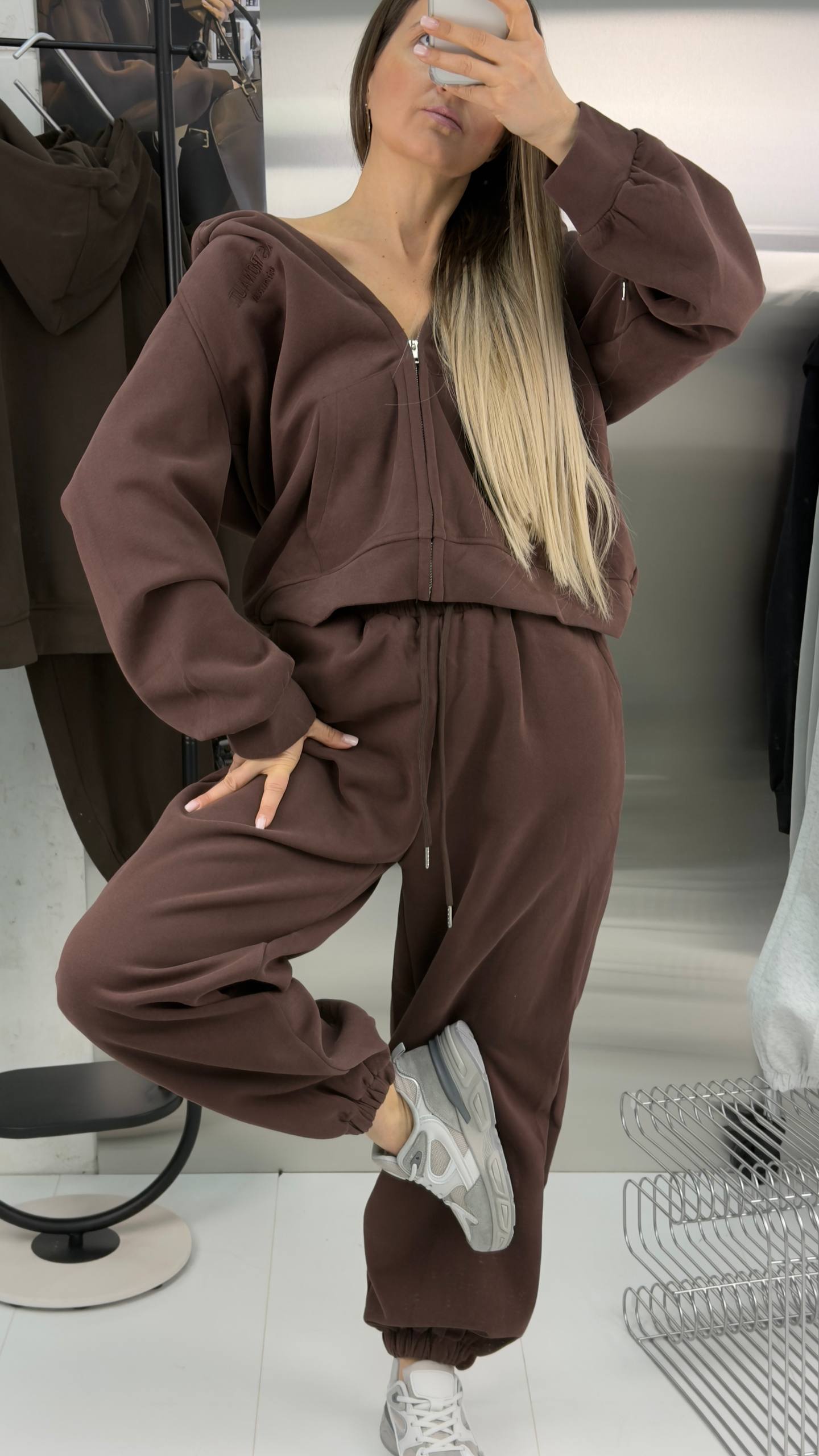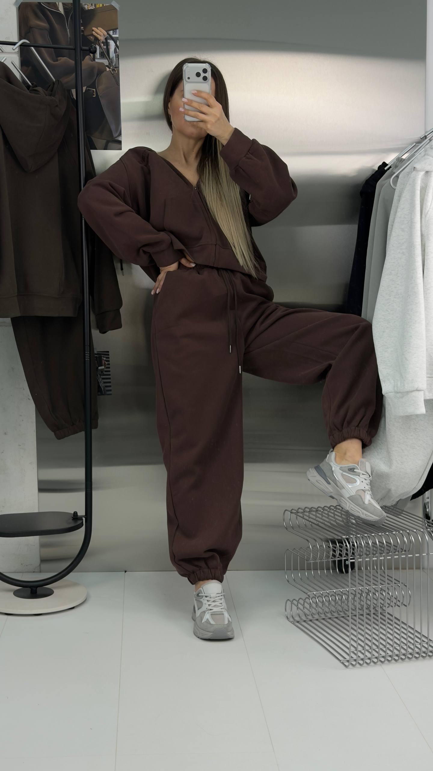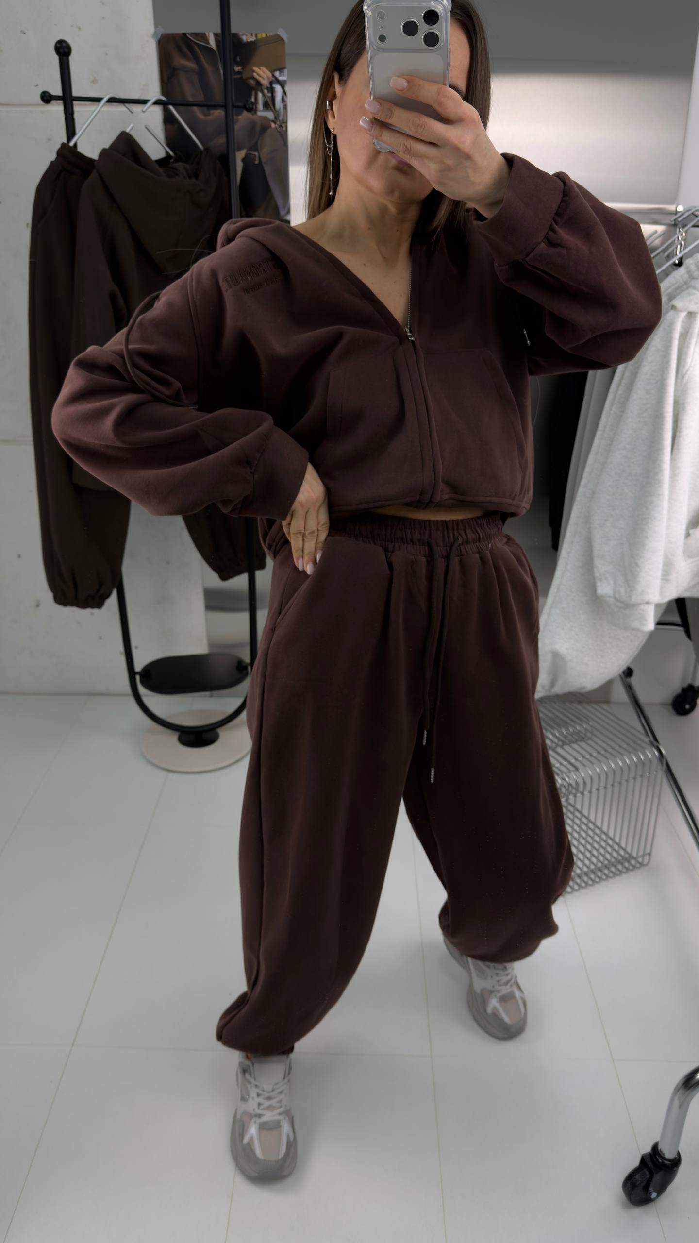 Женский спортивный костюм оверсайз свободного кроя сочетает комфорт, стиль и функциональность.