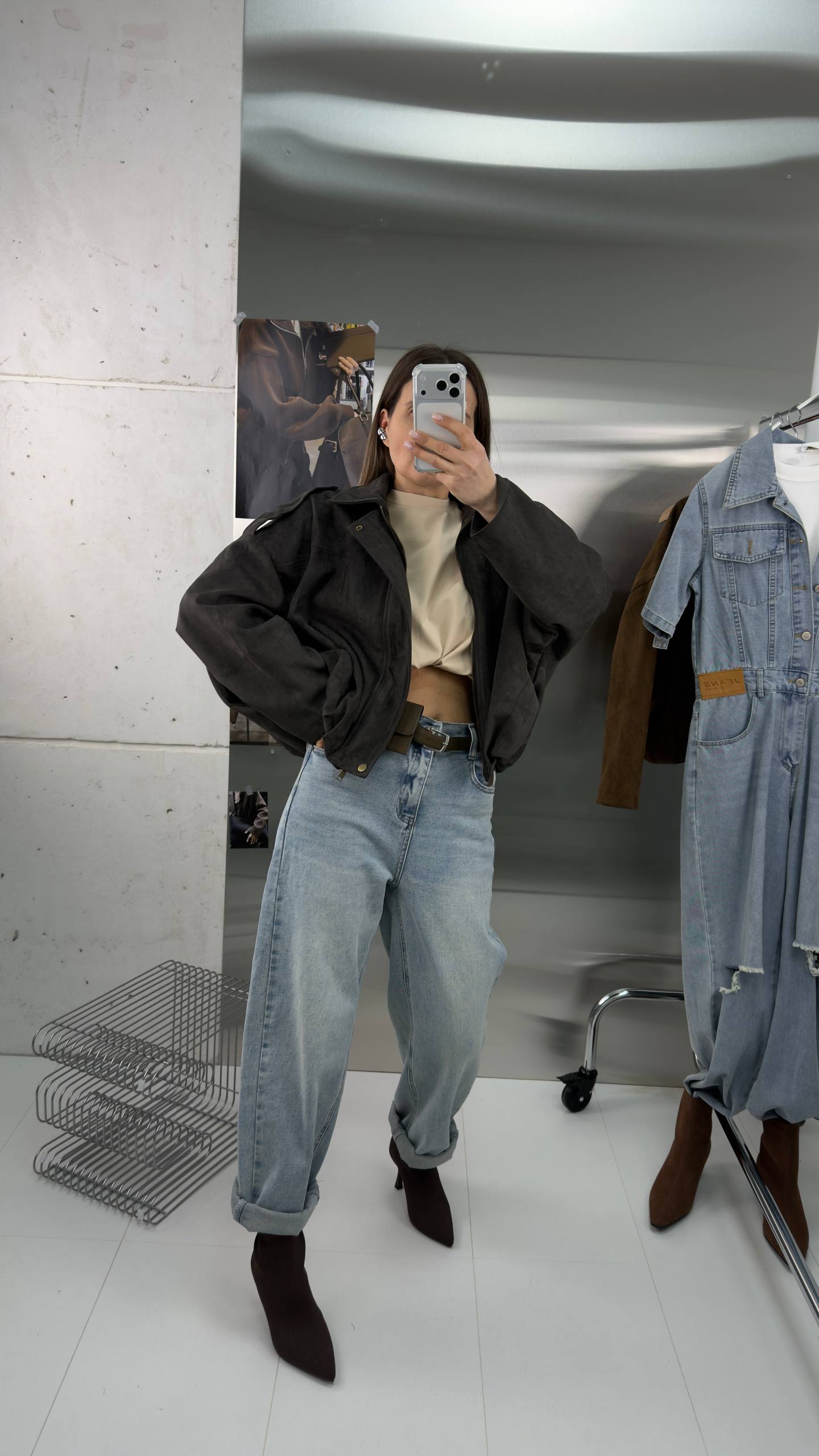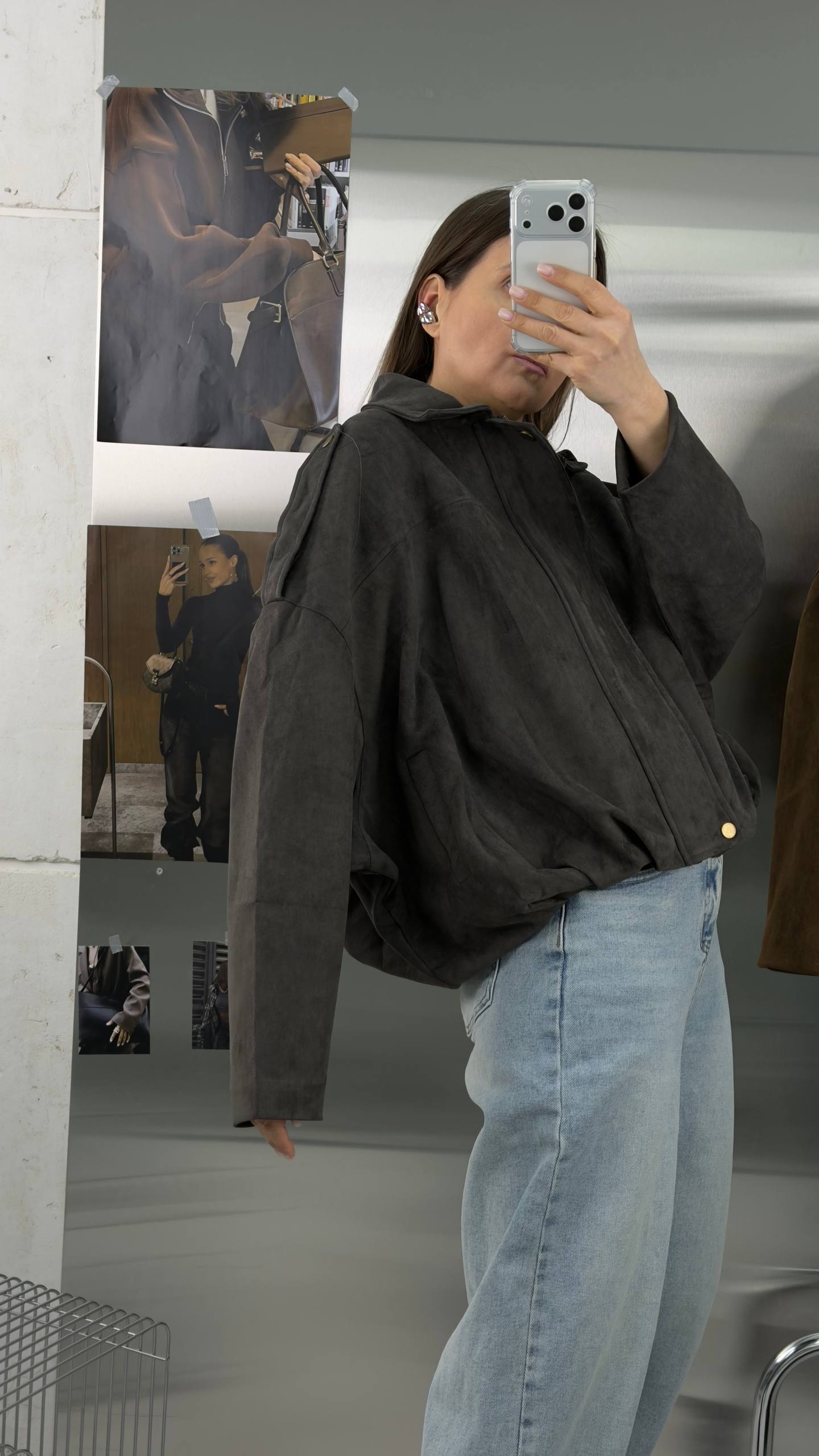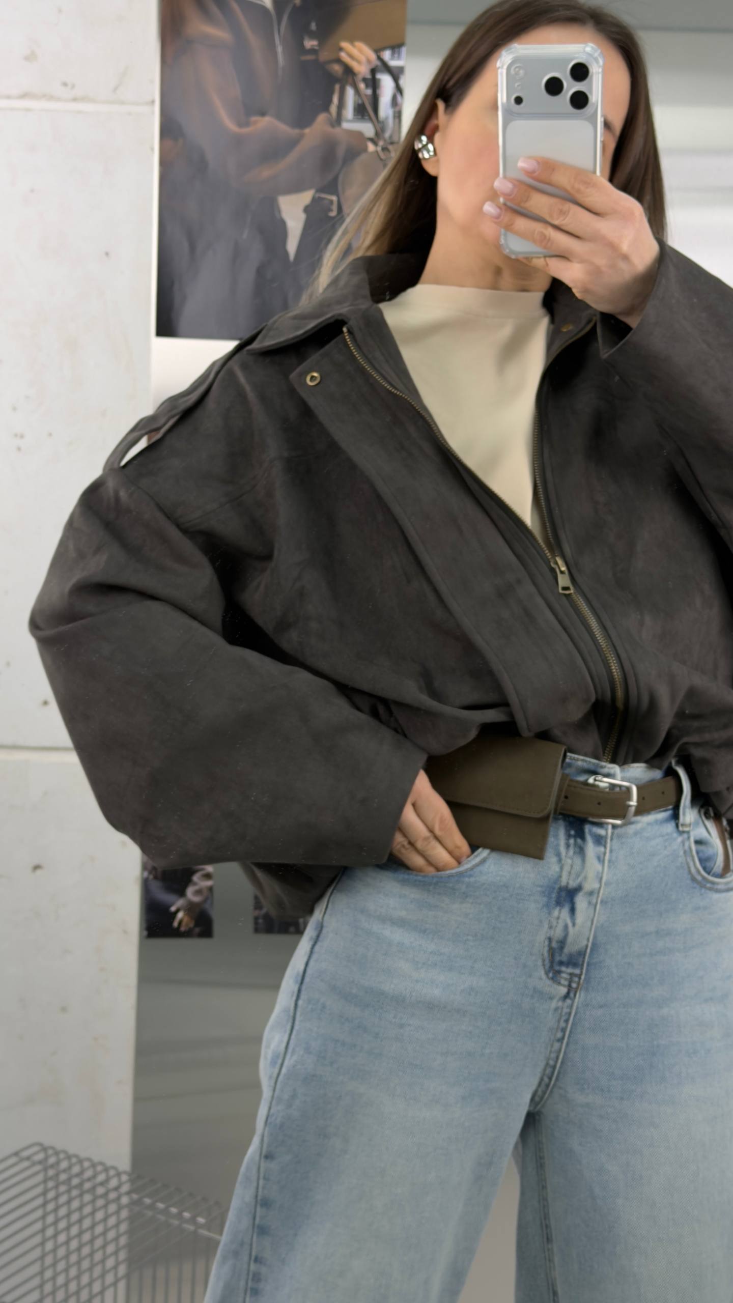 Короткий замшевый коричневый оверсайз бомбер - та самая вещь, которая всегда выручает в переходные сезоны. Легкая, мягкая и уютная куртка из экозамши станет вашим фаворитом на весну и осень, а также пригодится в прохладные летние вечера.