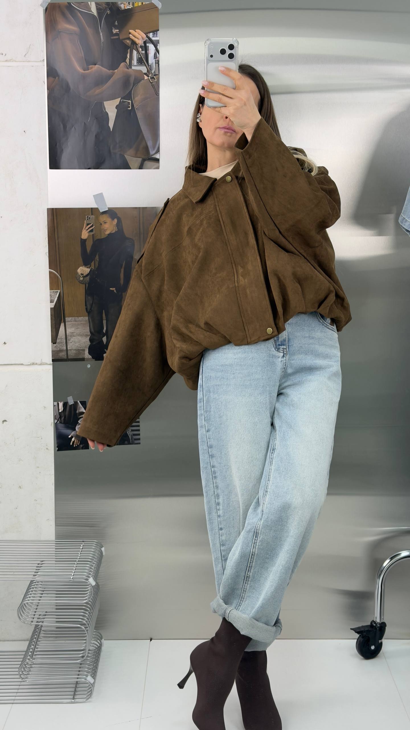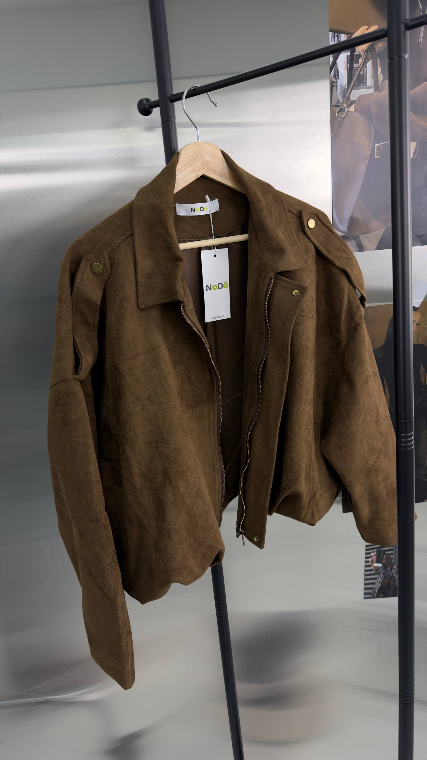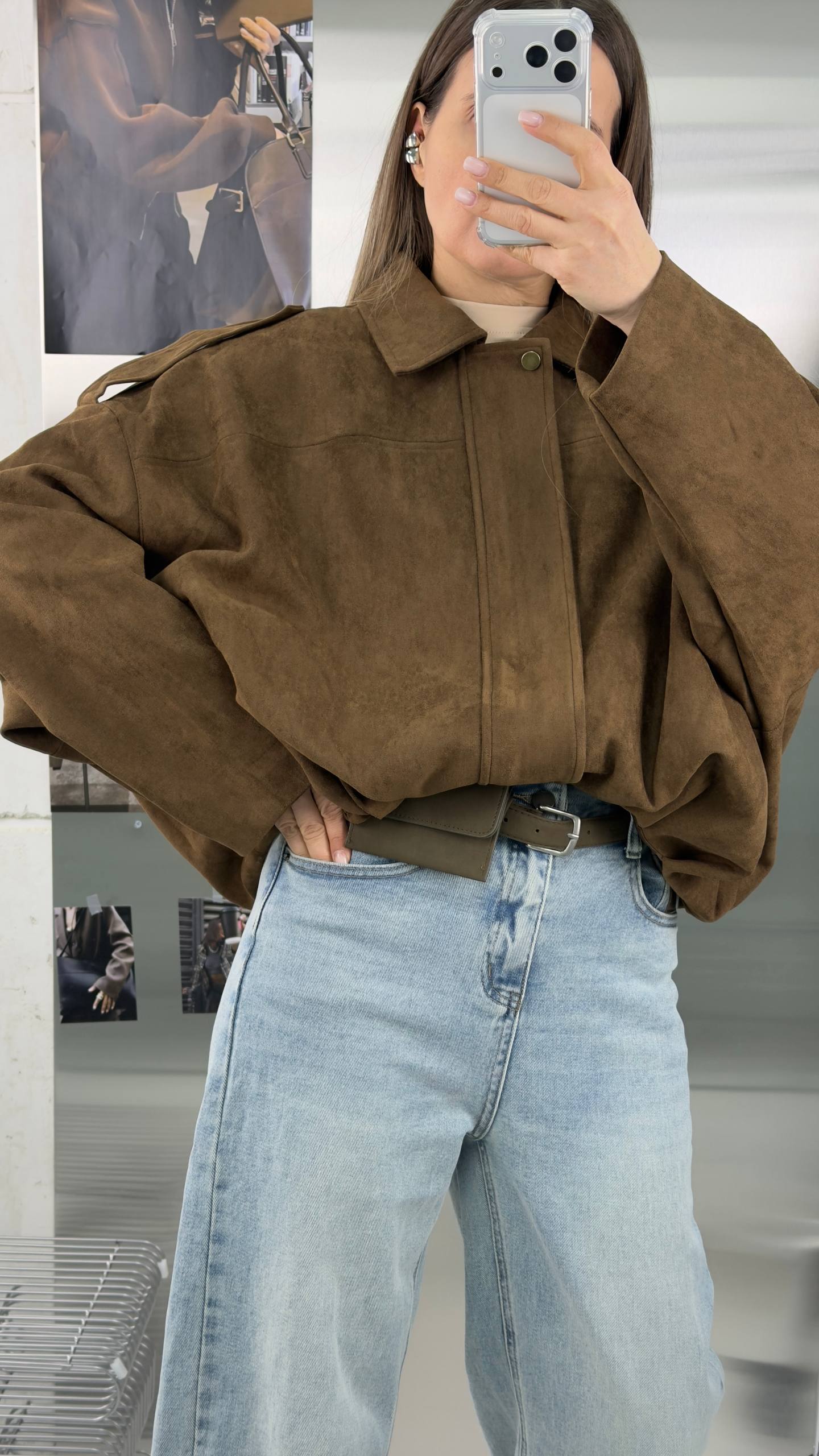 Короткий замшевый коричневый оверсайз бомбер - та самая вещь, которая всегда выручает в переходные сезоны. Легкая, мягкая и уютная куртка из экозамши станет вашим фаворитом на весну и осень, а также пригодится в прохладные летние вечера.