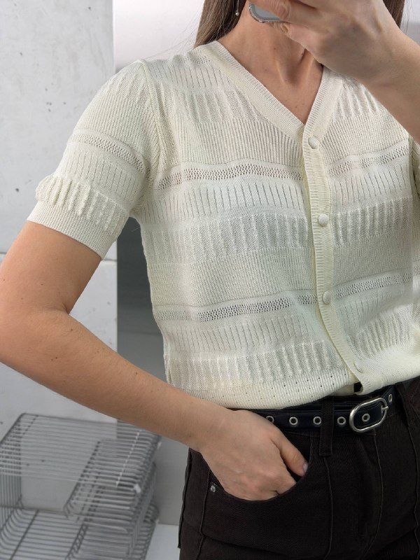 Кардиган женский с коротким рукавом - легкая и аккуратная модель для стильных образов. Укороченная кофточка подчеркивает талию и хорошо сочетается с любым низом.