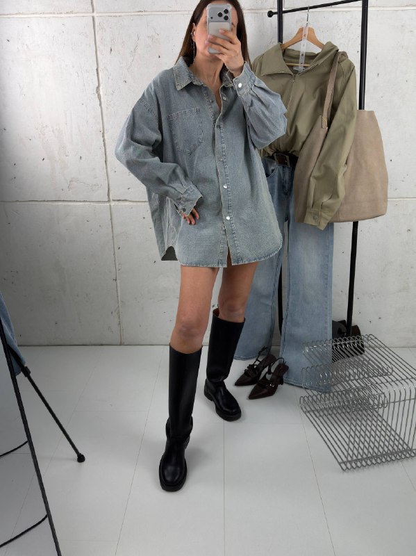 Удлиненная джинсовая женская рубашка NoDo.