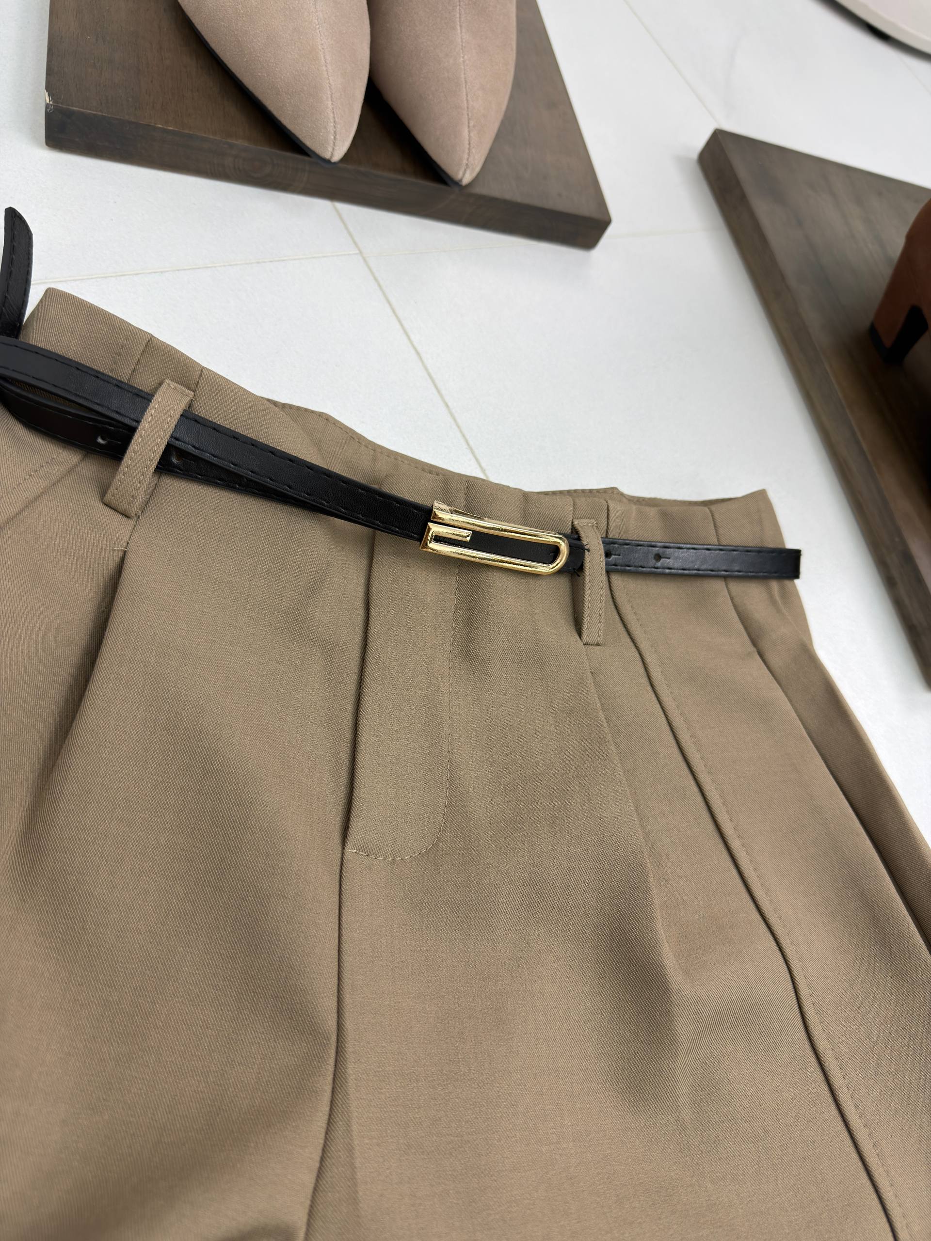 Модель с завышенной талией и свободным прямым кроем подходит для делового стиля, офиса и школы.