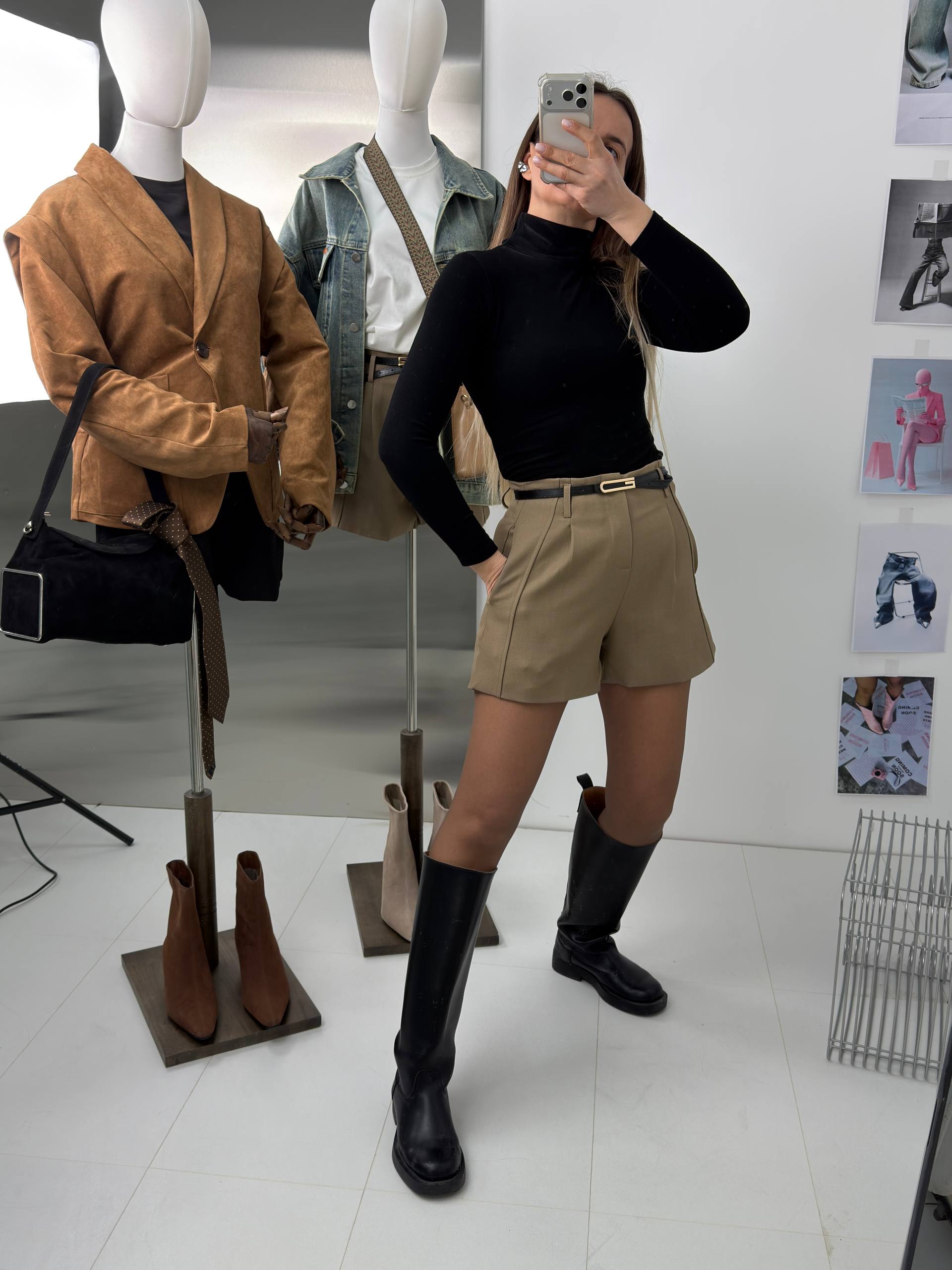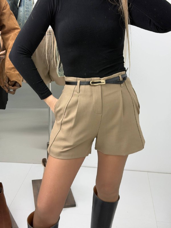 Шорты женские классические с высокой посадкой - офисные костюмные шорты для женщин и девушек.