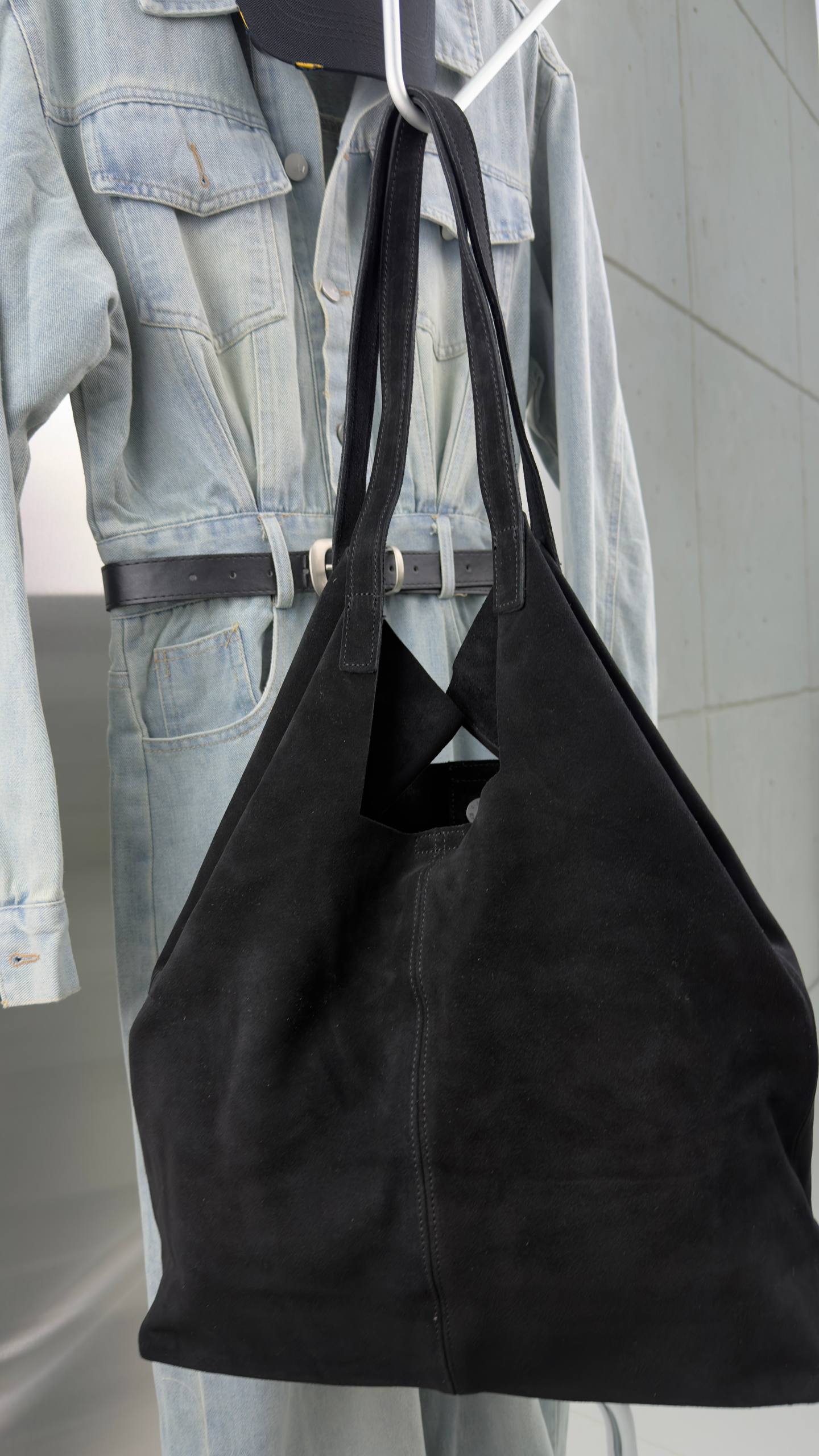 Сумка-мешок женская натуральная замша артикул 610-51 цвет "чёрный"