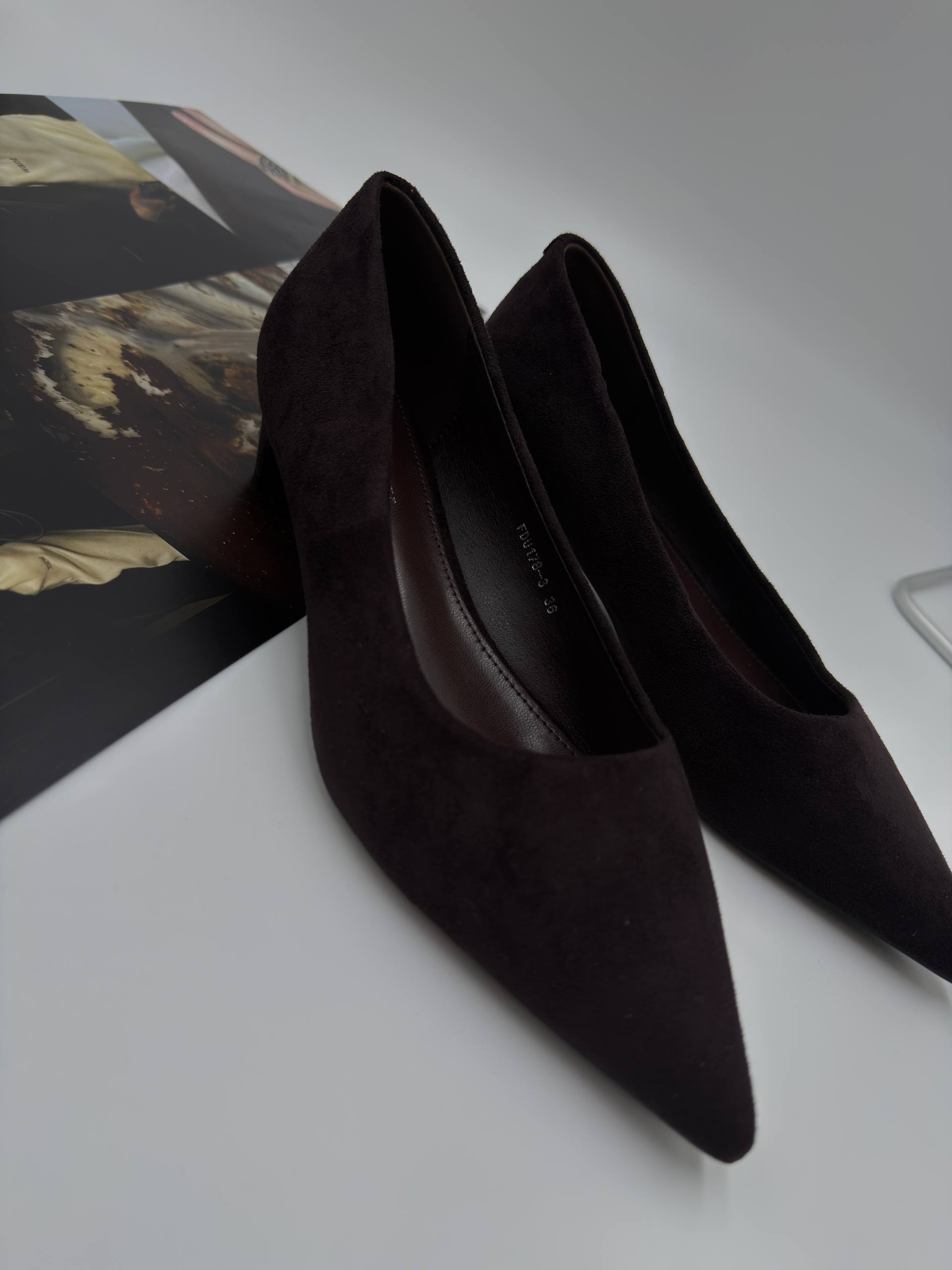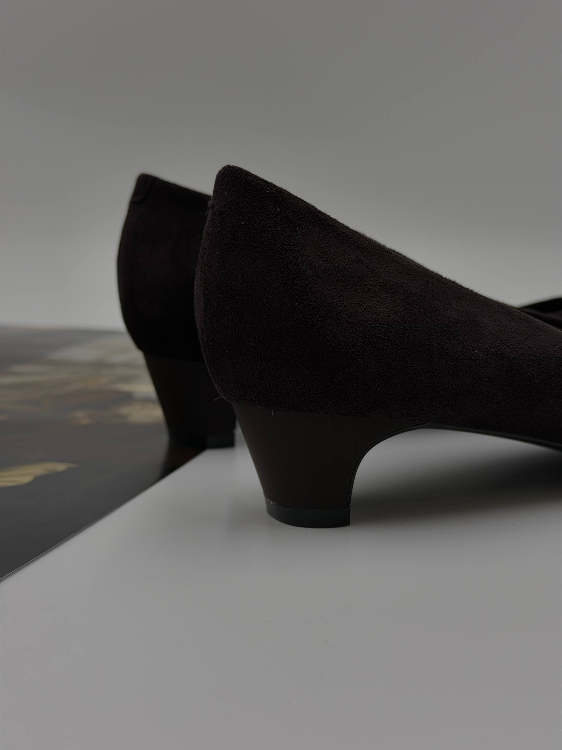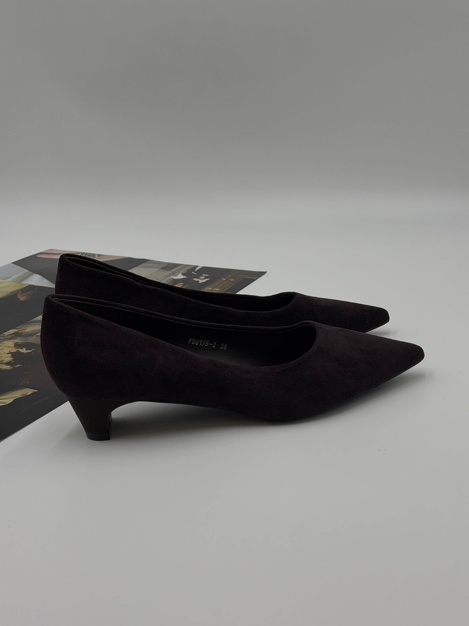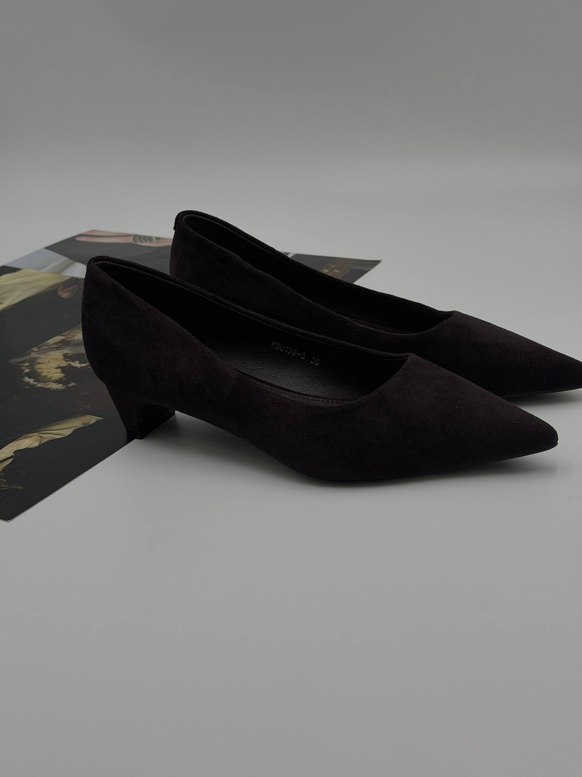 Женские туфли-лодочки из эко-замши сочетают в себе стиль и комфорт. Черные остроносые туфли на невысоком каблуке отлично подойдут для офиса, выпускного или праздничных мероприятий. Узкая форма и тонкая подошва создают элегантный образ, дополняющий как платье, так и брюки.